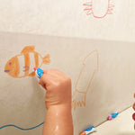 おふろ用キットパスは浴室の壁や浴槽などに直接描くこともできますが、使用前には必ず目立たない場所で消えるか試した上でお楽しみください。