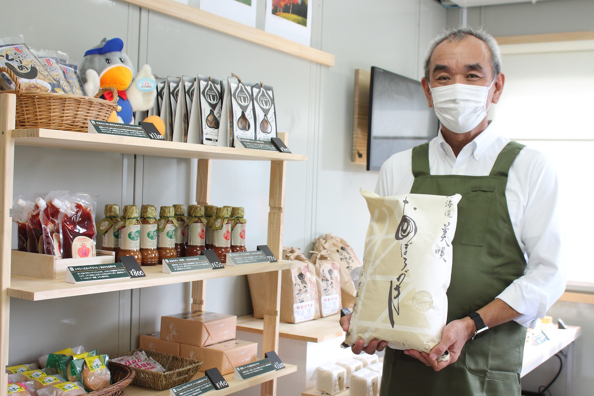 工場のある北海道美唄市を川崎から応援、魅力を発信したい、という目的で営業するコンテナショップです。新鮮な野菜やお米、美唄で採れるはちみつなどを美唄から直送しています。